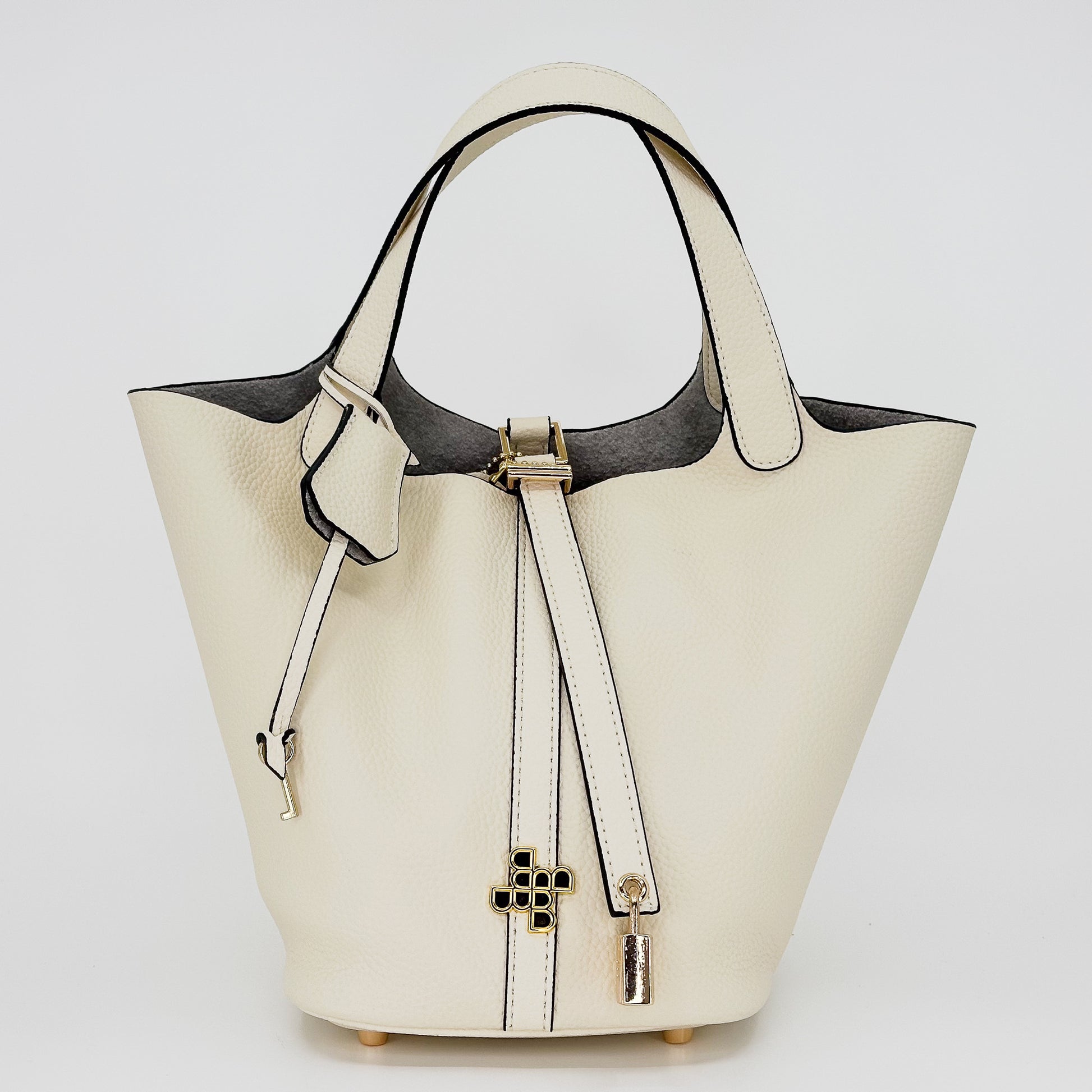 Carry your necessities and add a touch of whimsy with the L062 Padlock Tote. This adorable bag features a functional lock that doubles as a closure when your bag is full. Plus, the included makeup bag makes it perfect for your daily adventures. A must-have accessory for those who like a playful touch.