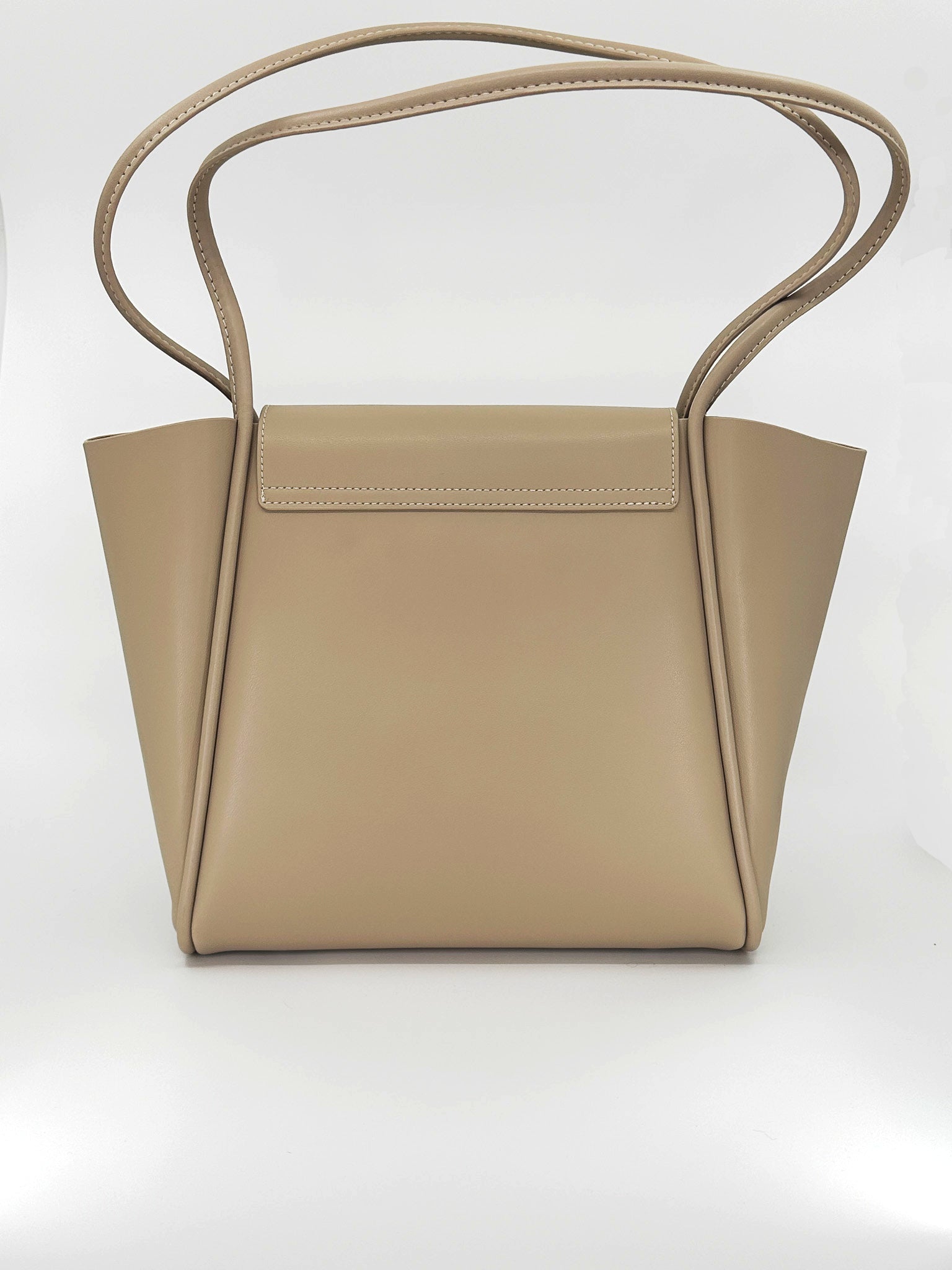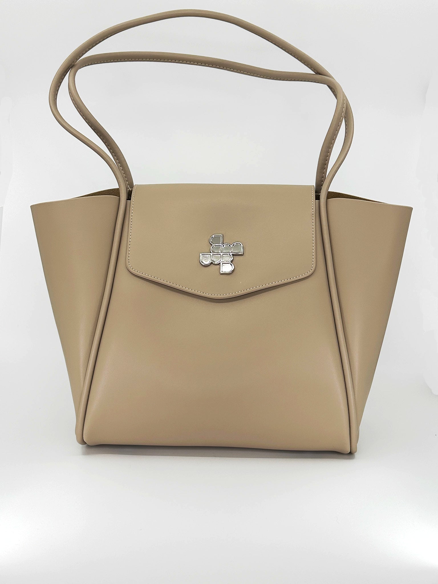 This spacious shopper tote is perfect for beach trips or carrying all your belongings. The durable straps ensure a reliable hold, while the flap keeps your items secure. Plus, the mocha color adds a touch of sophistication to this XL tote. Go big and to the beach!